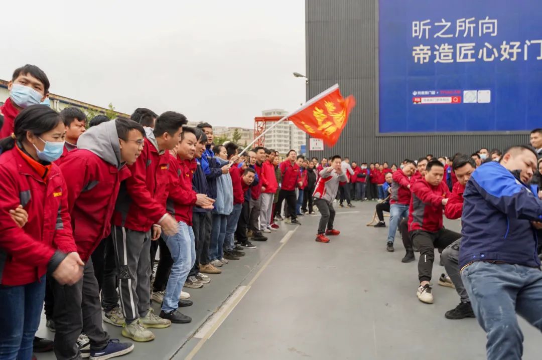 12月11日下午四点,帝奥斯门窗第十届拔河比赛在帝奥斯总部拉开帷幕,全体帝奥斯家人整装待发,列队迎接2023职工体育运动会,赖厂长在大会上作了热情洋溢的开幕动员,全体家人精神饱满,斗志昂扬的跃跃欲试。帝奥斯门窗董事长伍董、总裁伍总、副总经理谢志玲、董事长助理曾军、厂长赖江平、营销总经理唐毅灵等领导均莅临现场指导,为参赛队员加油鼓劲。